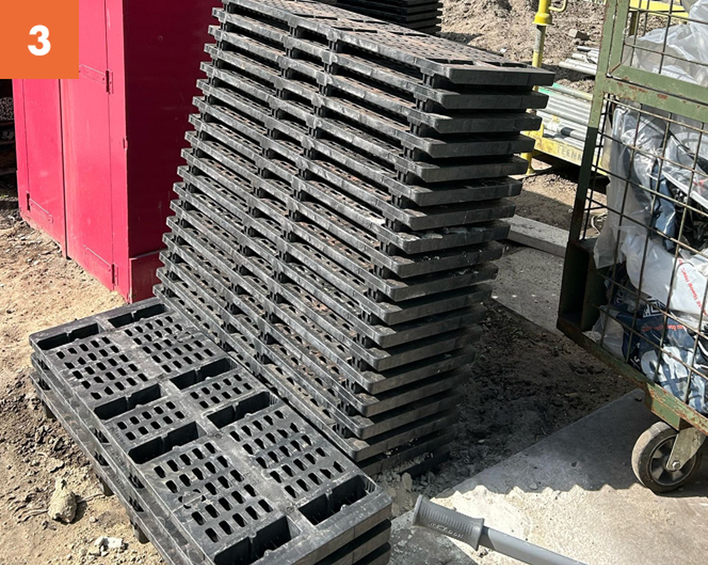 • Palettes fabriquées à partir de plastique 100 % recyclé